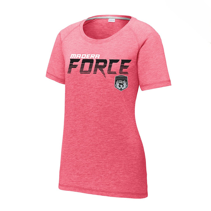 A perfect balance of comfort, performance, and fit, this women’s tri blend tee delivers a soft feel with moisture wicking capability for training and everyday wear. Designed specifically for women, it features a gently contoured silhouette for a flattering, athletic look.